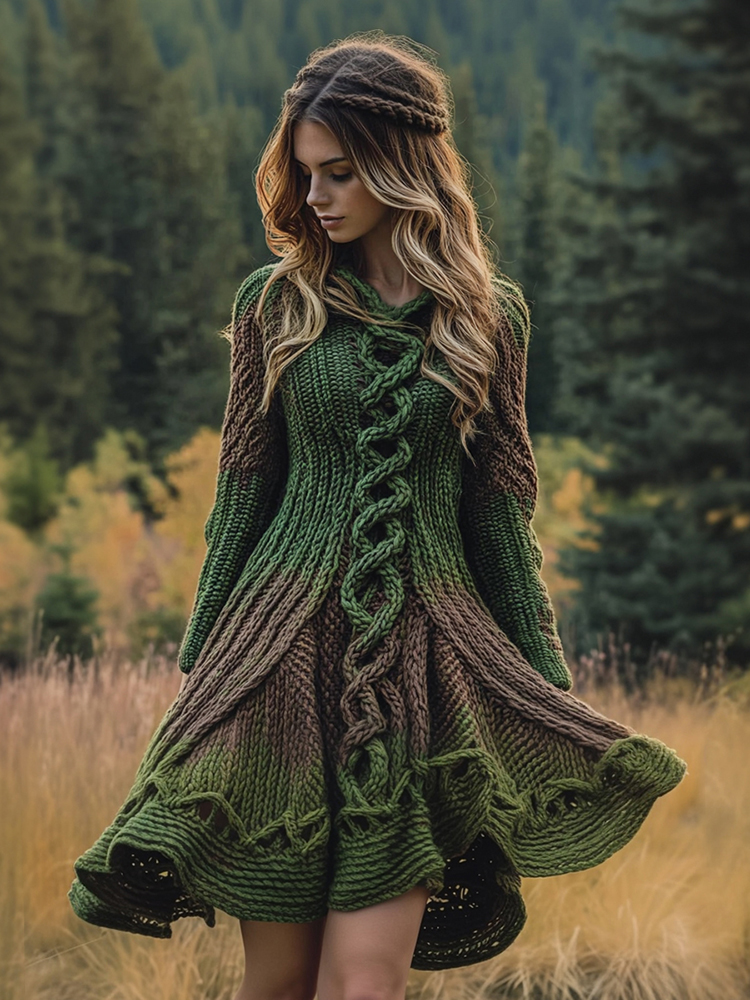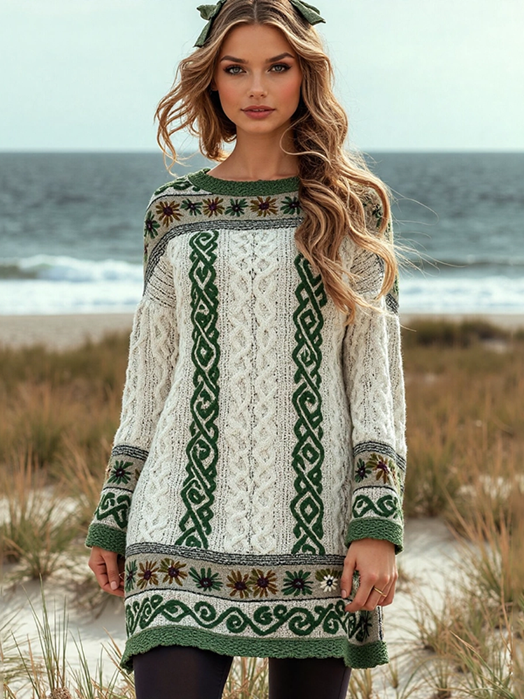 Women's Irish Celtic Knot Jacquard Knitted Sweater Dress