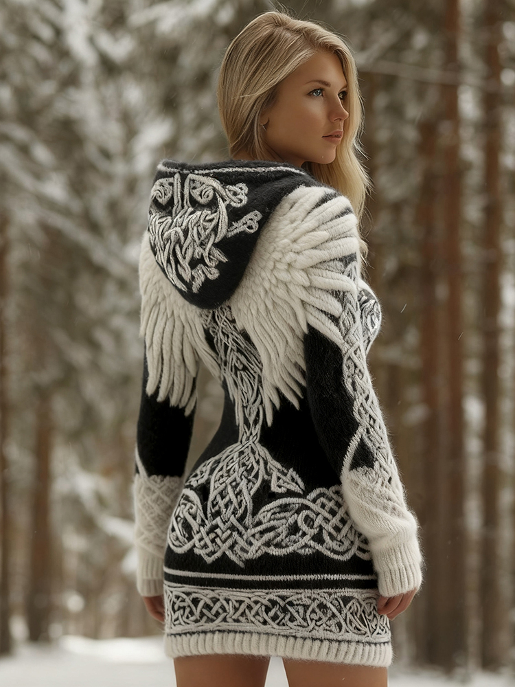 Women's Viking Angel Wings Celtic Knot Mini Hooded Sweater Dress