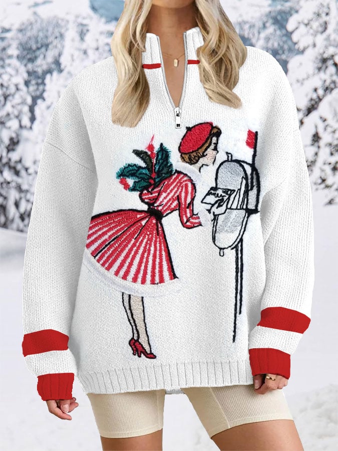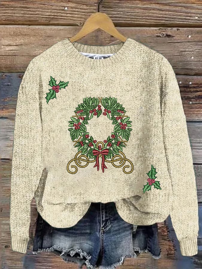 Knitted Women's Christmas Print Crew Neck Sweater