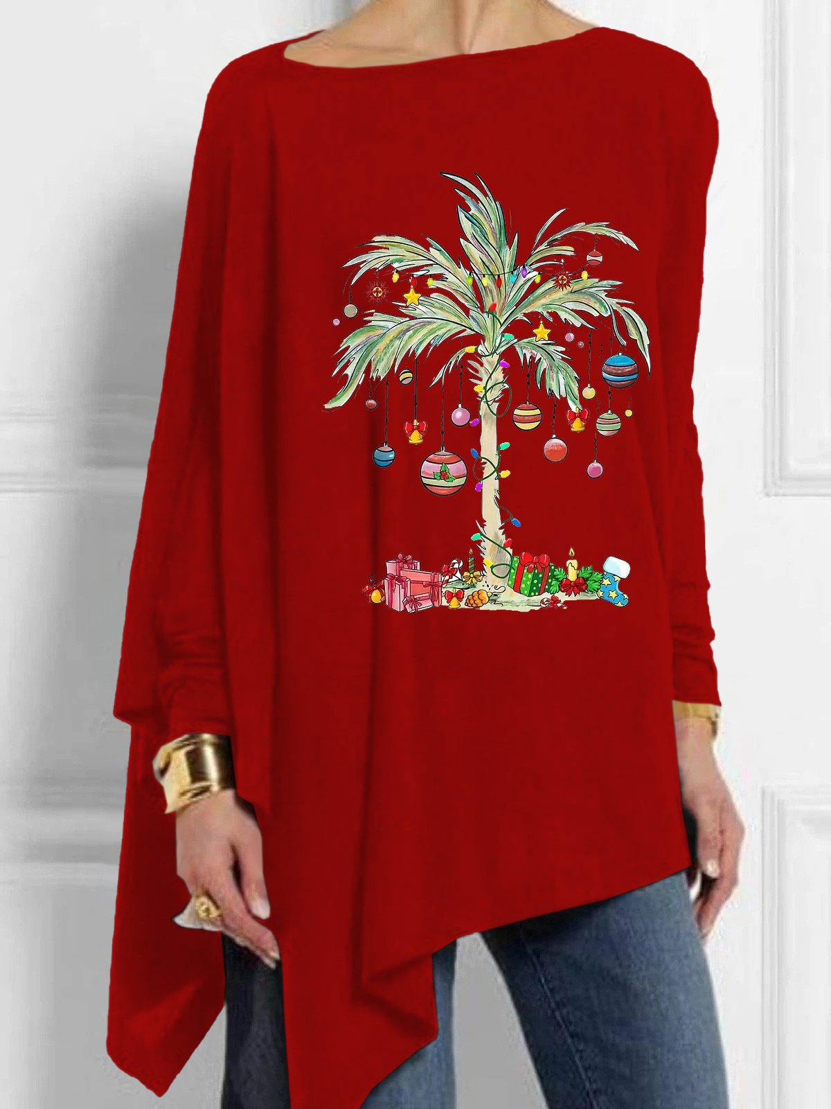Women's Christmas Palm Tree Round Neck Casual Irregular T-Shirt