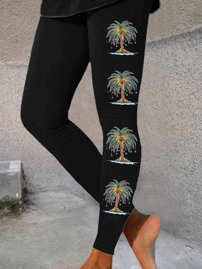 Women's Christmas Palm Tree Print Casual Leggings