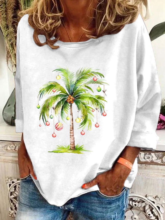 Women's Christmas Palm Tree Print Casual Sweatshirt