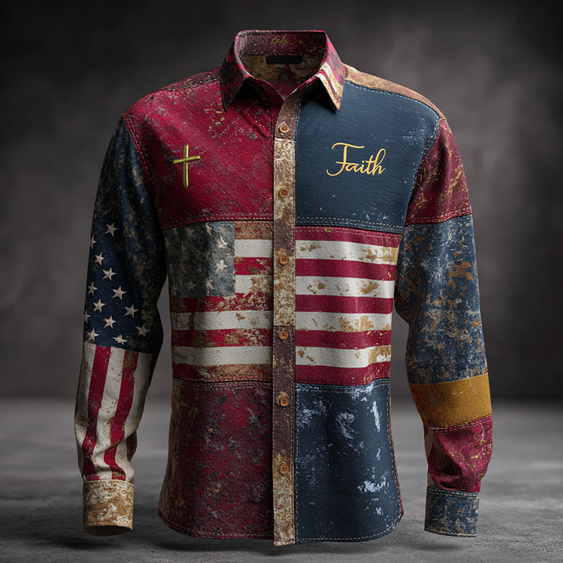 Vintage American Flag Faith Art Print Casual Shirt