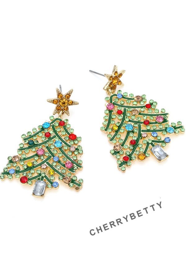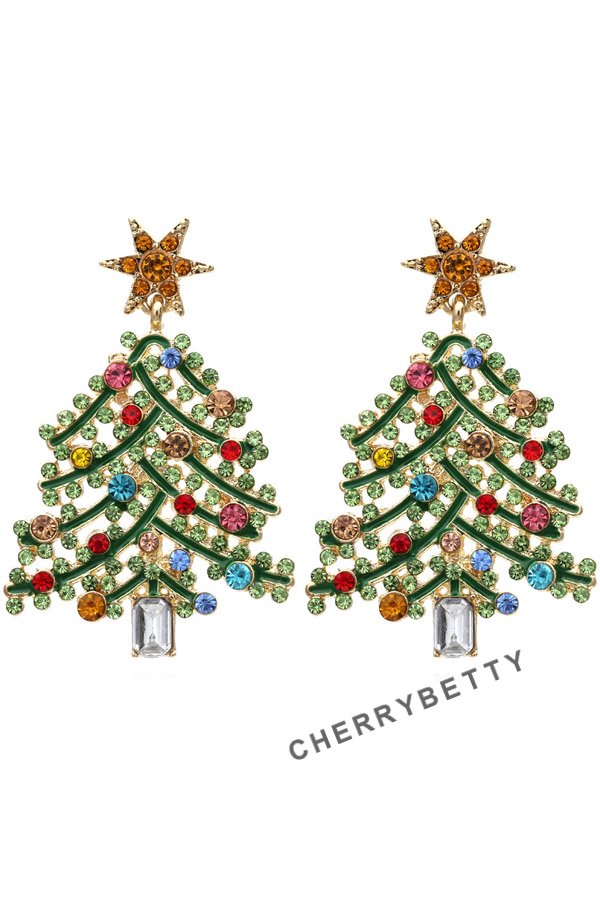 Rhinestone Christmas Tree Pattern Earrings
