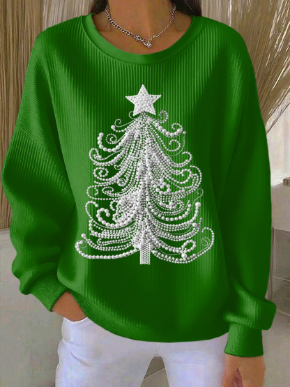 Casual Crew Neck Christmas Sweatshirt Printing