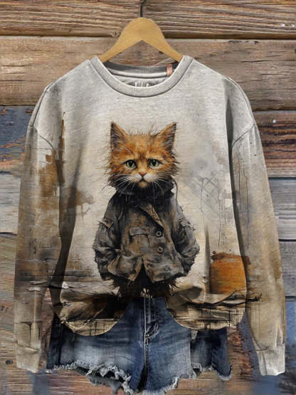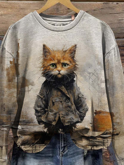 Cat Art Print Casual Sweatshirt