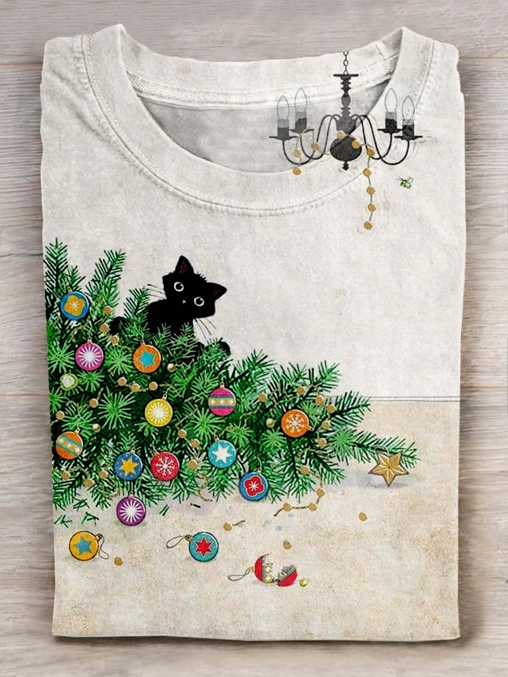 Christmas Cat Art Print Casaul Short Sleeve T-shirt