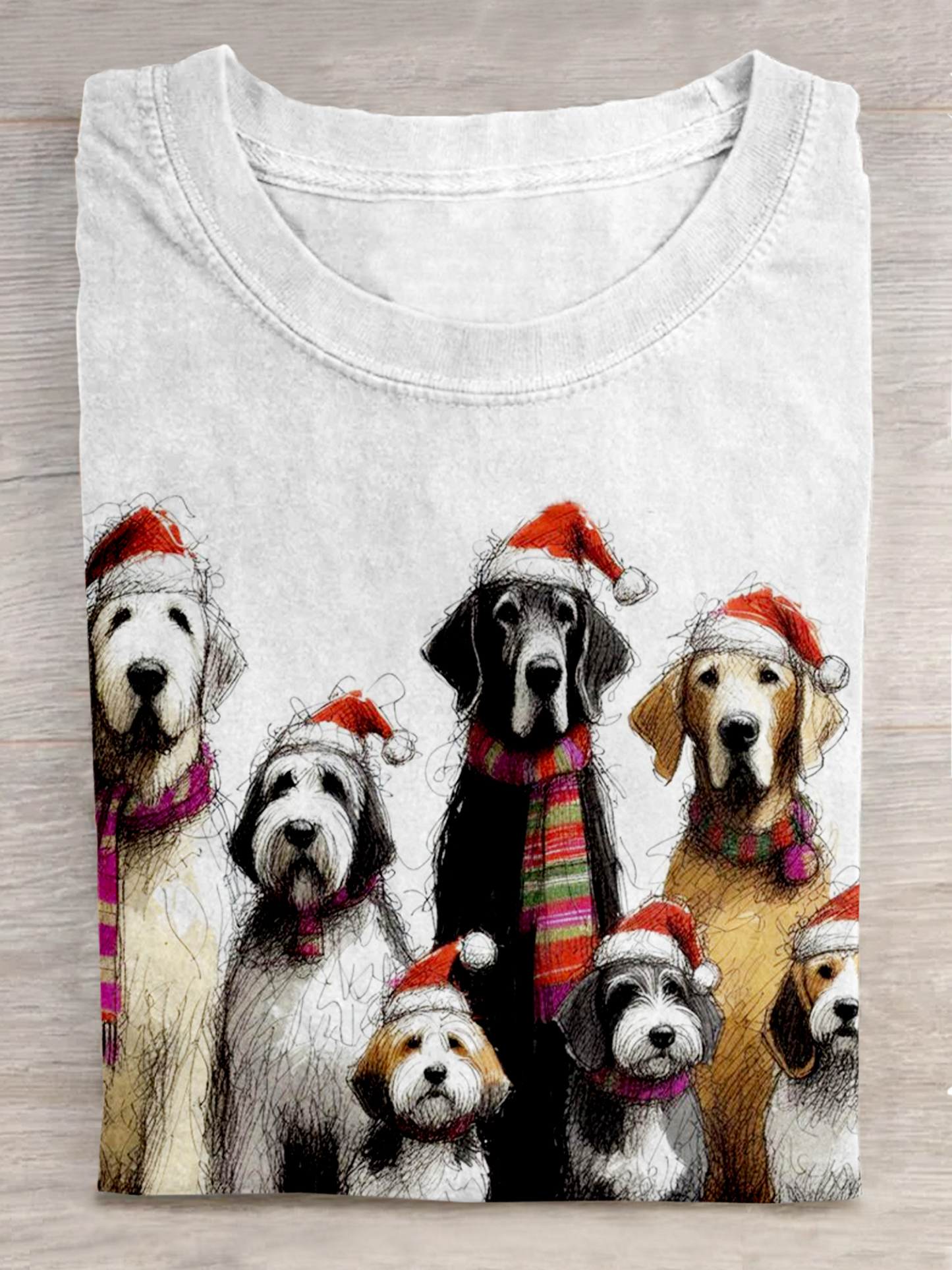 Christmas Cute Dog Art Print Casaul Short Sleeve T-shirt