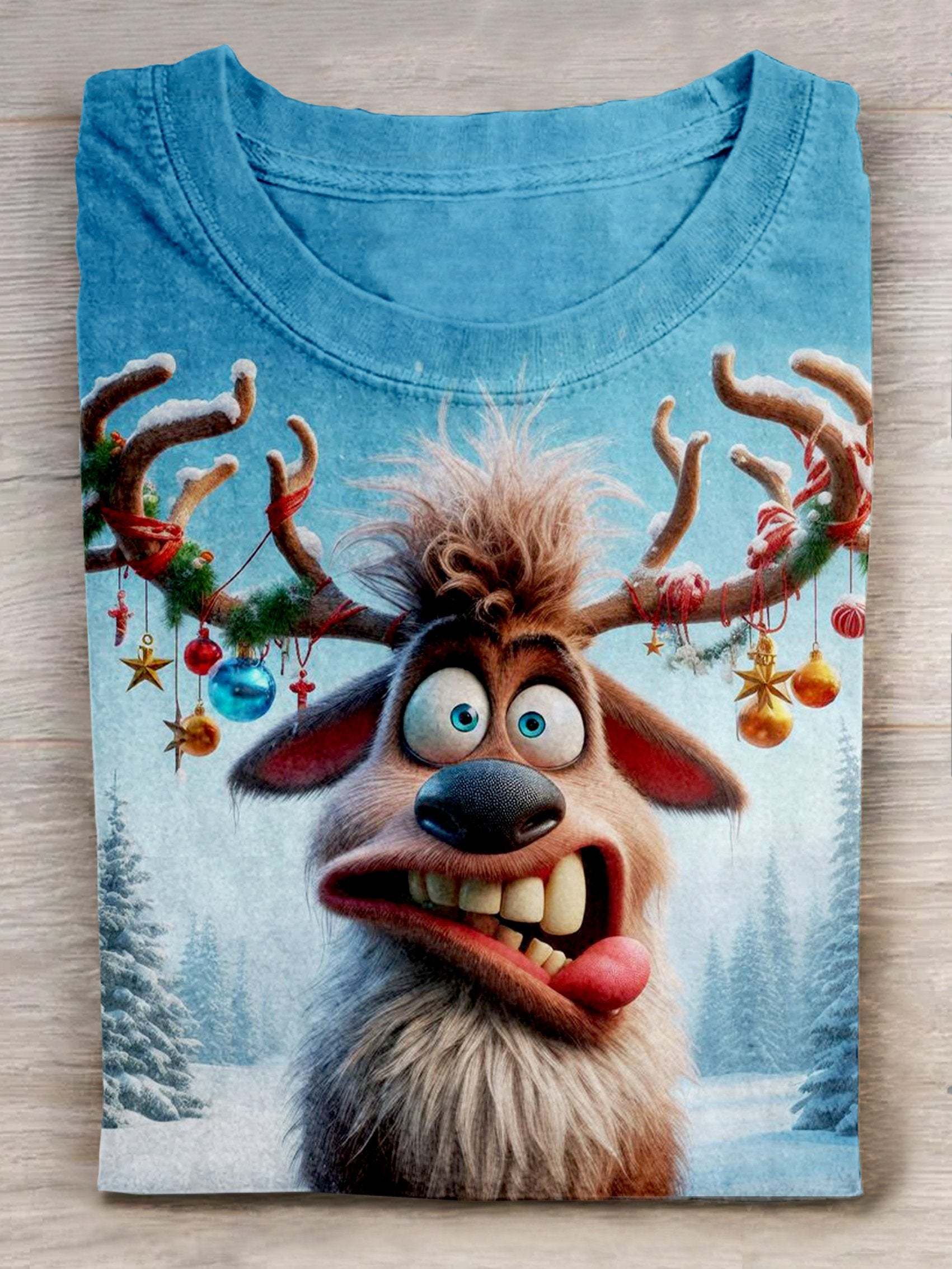 Christmas Deer Art Print Casaul Short Sleeve T-shirt