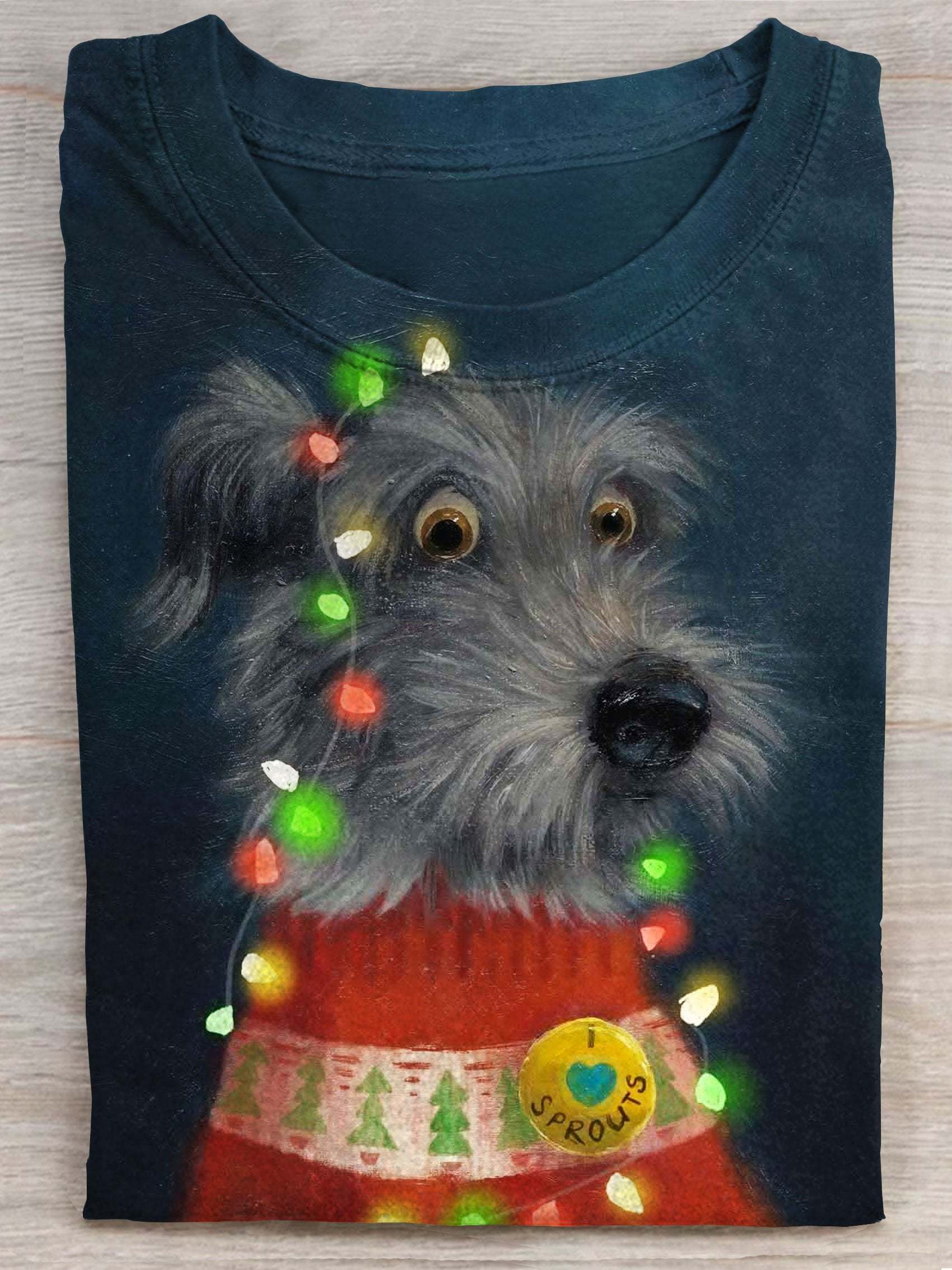 Christmas Dog Art Print Casaul Short Sleeve T-shirt
