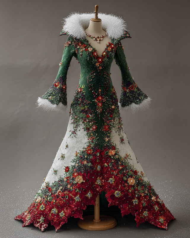 Christmas Theme Elegant Party Fur Dress7752