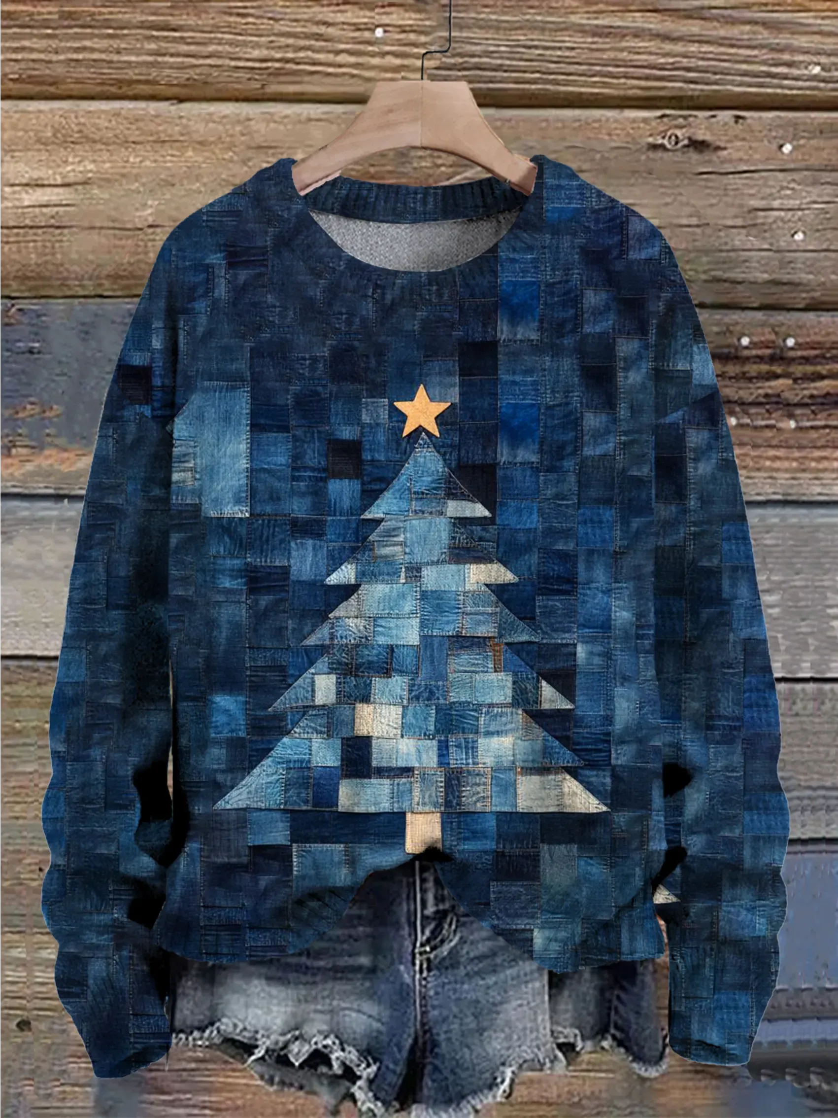 Christmas Tree Patchwork Art Knit Pullover Sweater