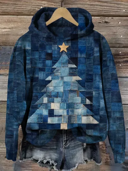 Christmas Tree Patchwork Art Print Casual Hoodie Sweatshirt