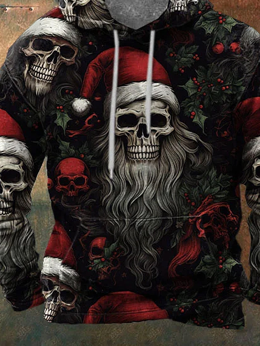 Christmas Vintage Skeleton Horror Art Print Pattern Casual Hoodie Sweatshirt