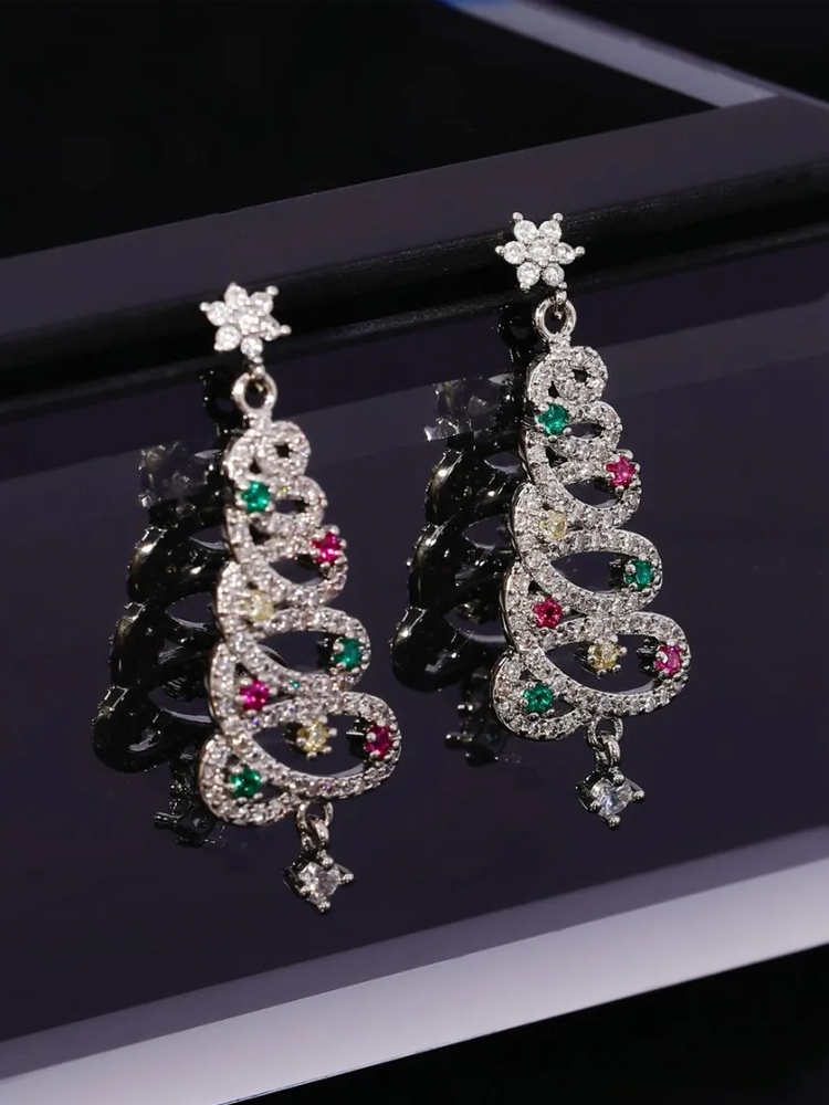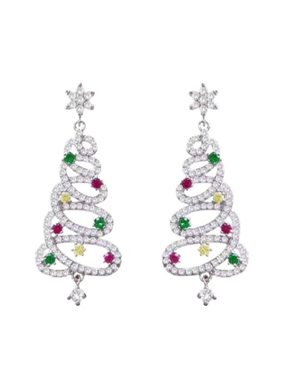 Colorful Zirconia Micro Set Christmas Tree Earrings
