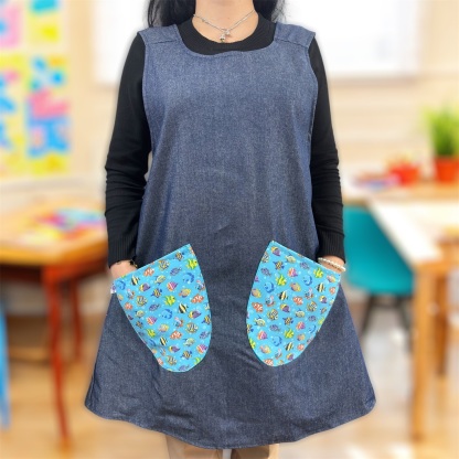 The denim main tone with ocean print pockets is an interpretation of personality and vitality style, suitable for handmade studios, outdoor scenes, etc., which fits the current pursuit of fun and practical aesthetics. When creating or picnicking, it seems to integrate vitality and love into daily life, and convey enthusiasm for life with visual language, which is unique and eye-catching.