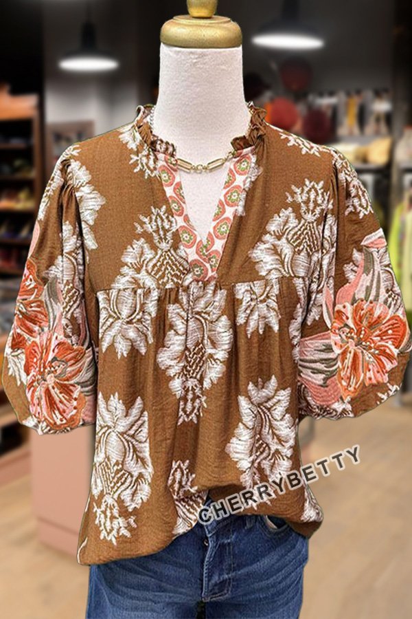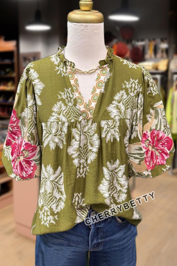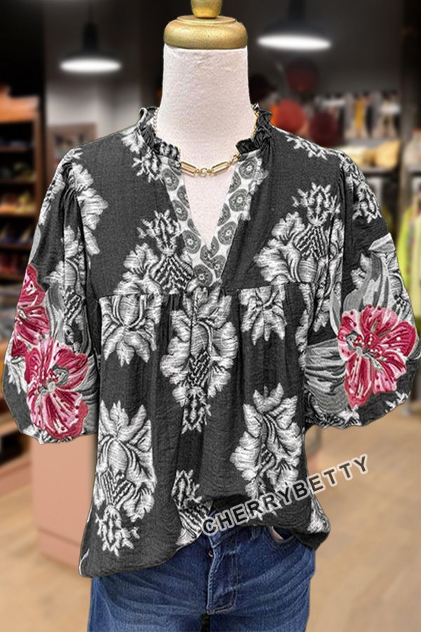 Embroidered Puff Sleeve Floral Top