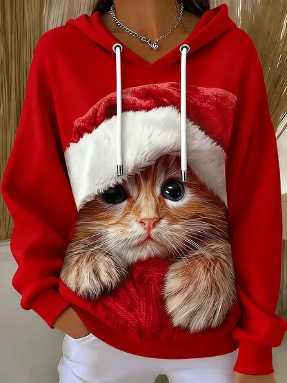 Funny Christmas Cat Casual Hoodie Sweatshirt