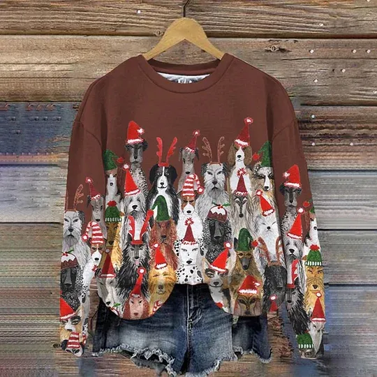 Funny Christmas Dog Art Print Casual Sweatshirt