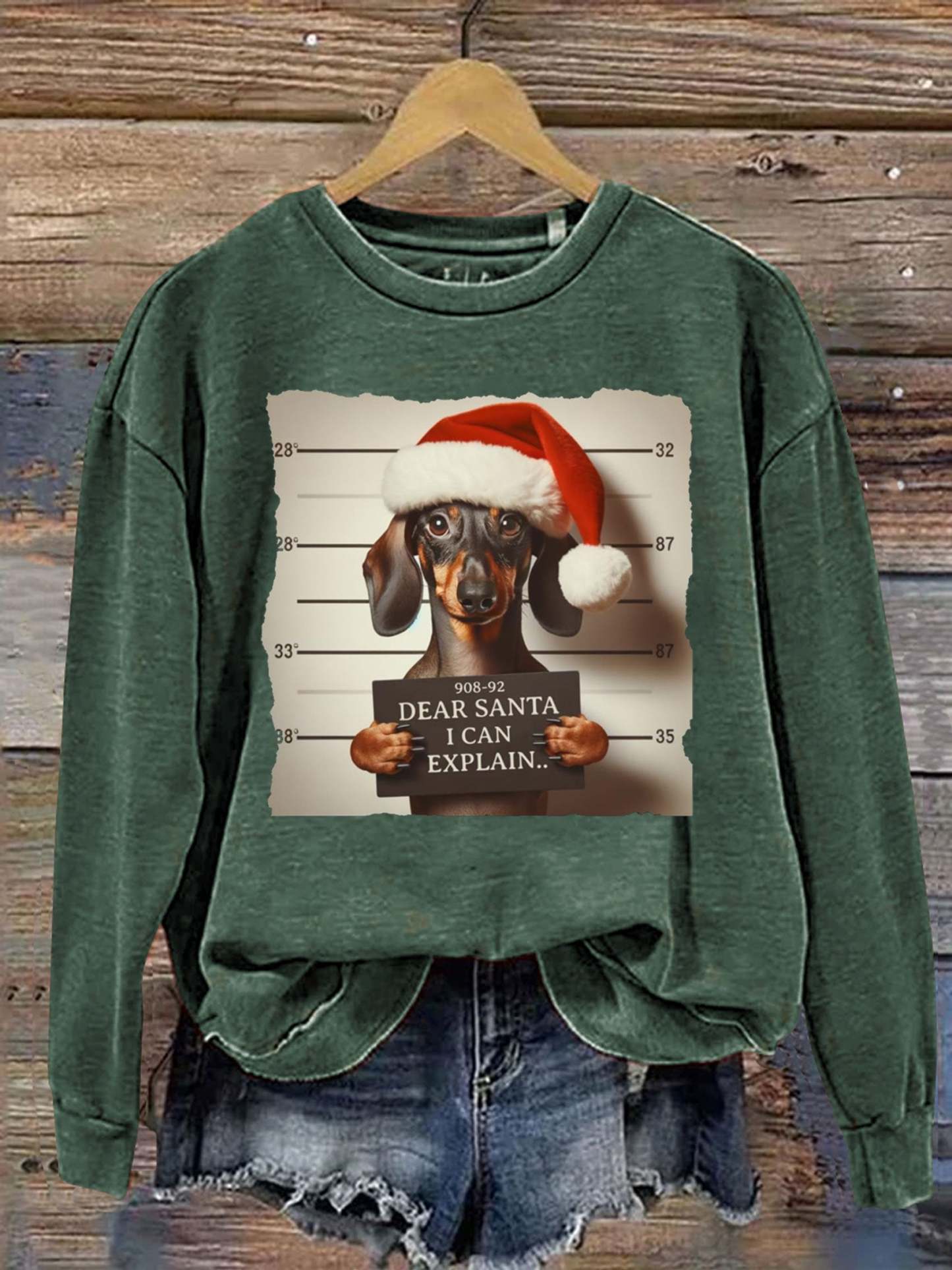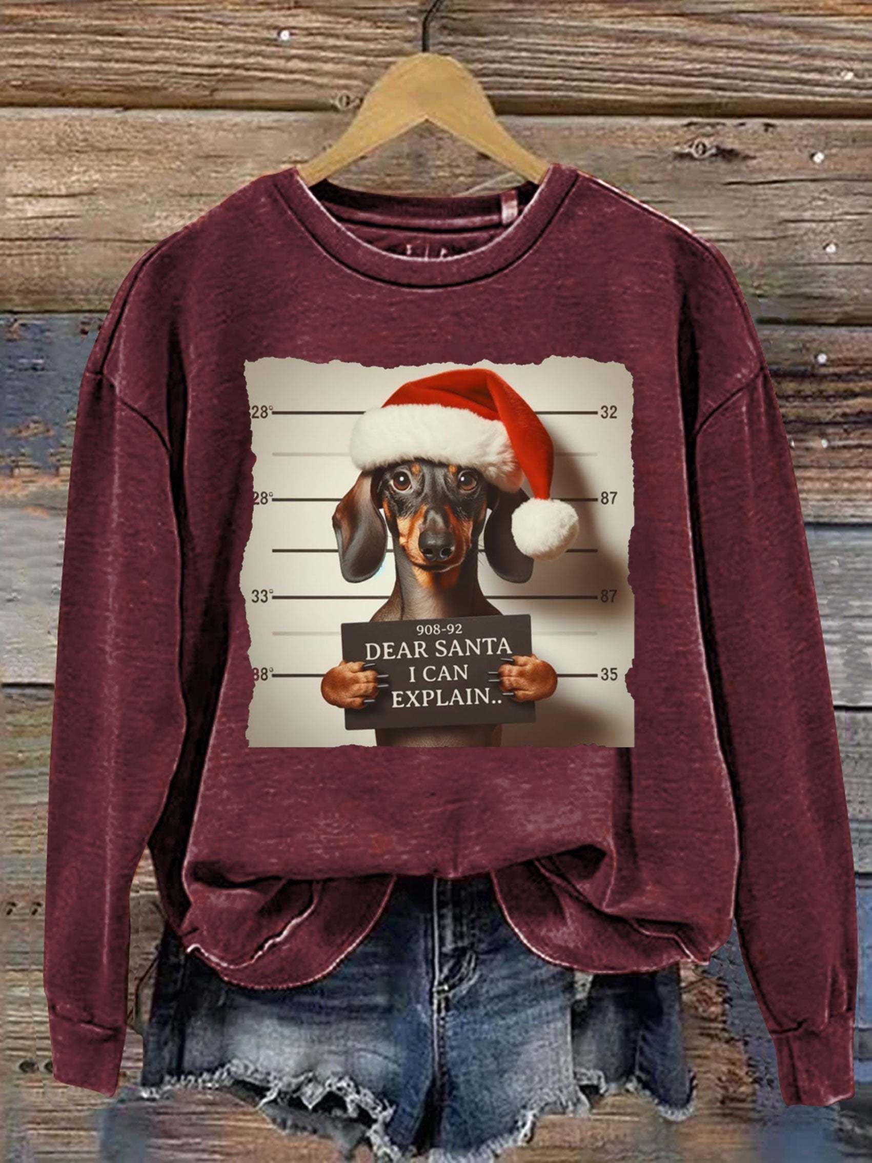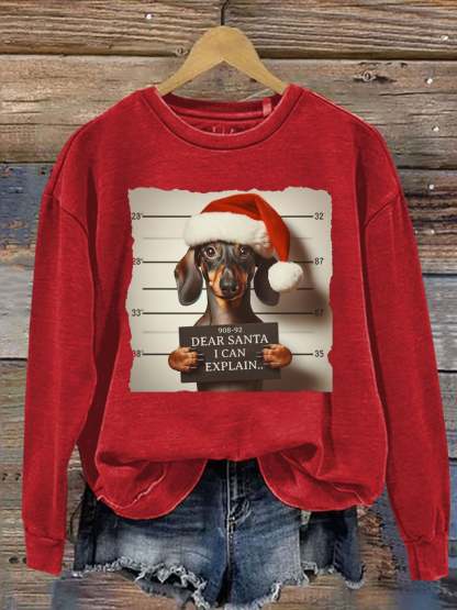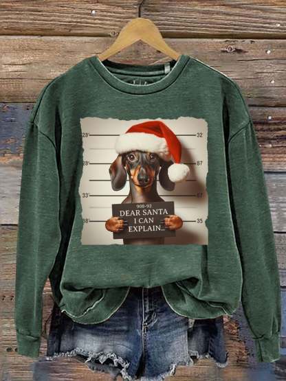 Funny Dachshund Christmas Dear Santa I Can Explain Weiner Print Casual Sweatshirt