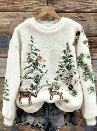 Funny Snow Scene With Reindeer Art Casual Cotton Sweatshirt