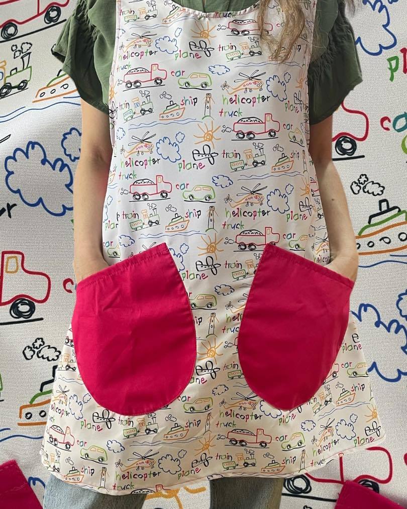 The full-print "Small World of Transportation" pattern shows various means of transportation such as cars and airplanes, and wears the innocent love and infinite imagination on the body, suitable for family parent-child space, campus classroom and other scenes, using childlike design to convey enthusiasm for life, whoever wears it looks like a "walking creative drawing board"