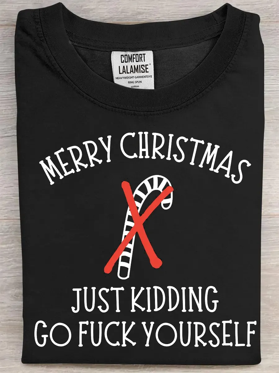 Humor Satire Christmas Fuck Print Casual Pure Cotton Short Sleeved T-shirt