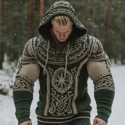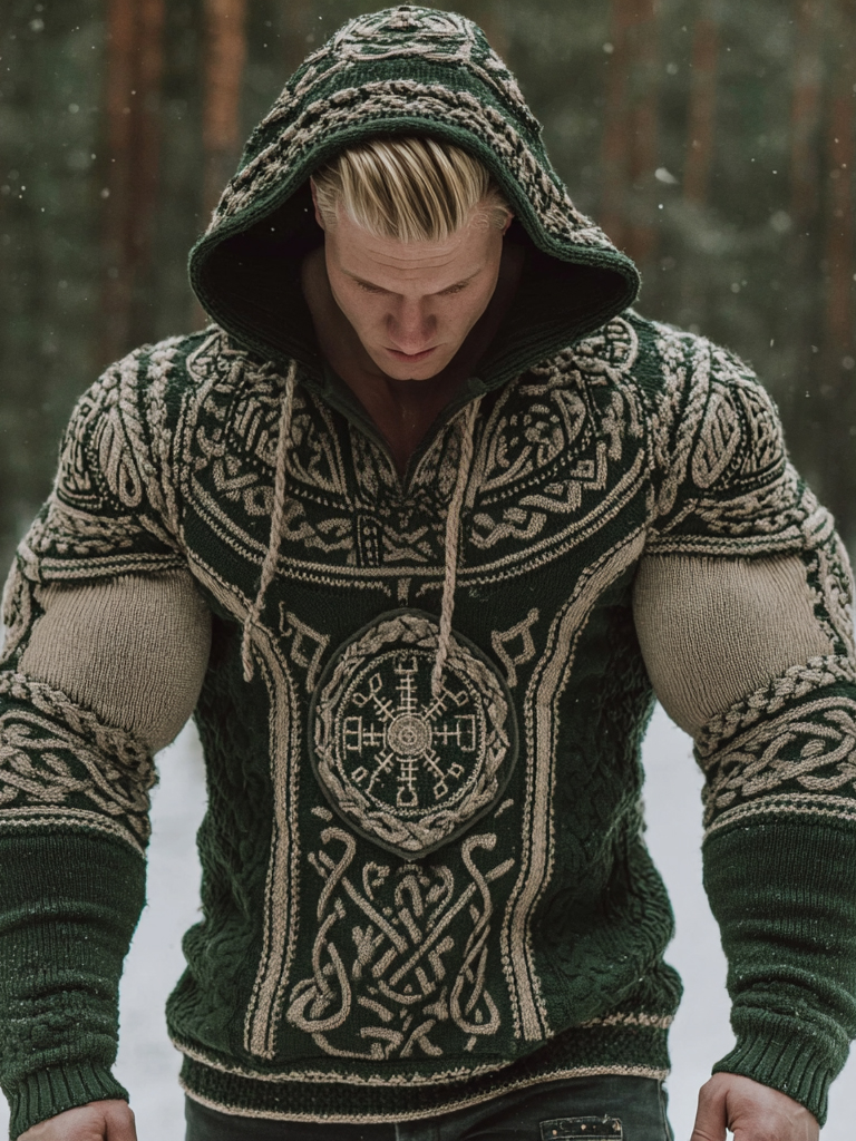 Men's Celtic Knot Viking Compass Knit Jacquard Knitted Hoodie
