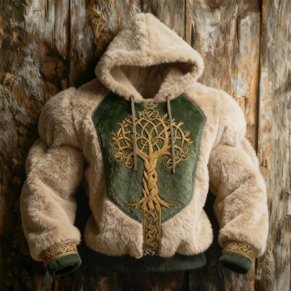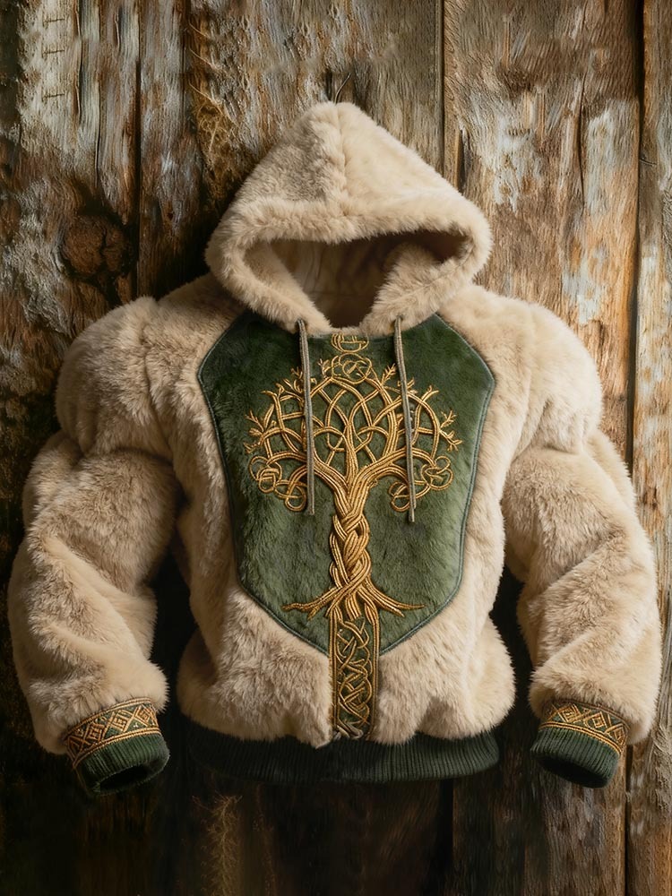 Men's Celtic Tree Of Life Color-blocking Design Plush Warm Hoodie