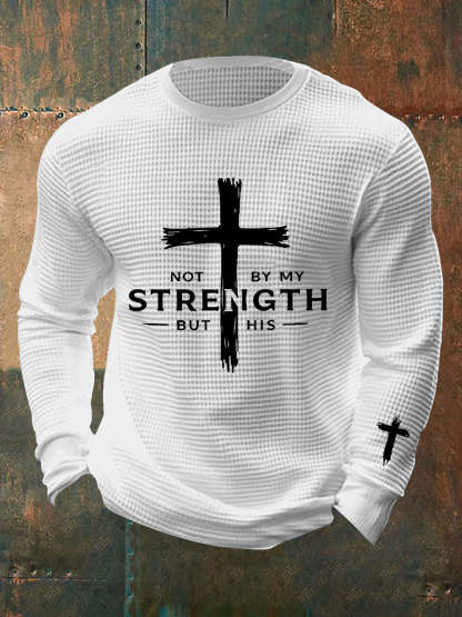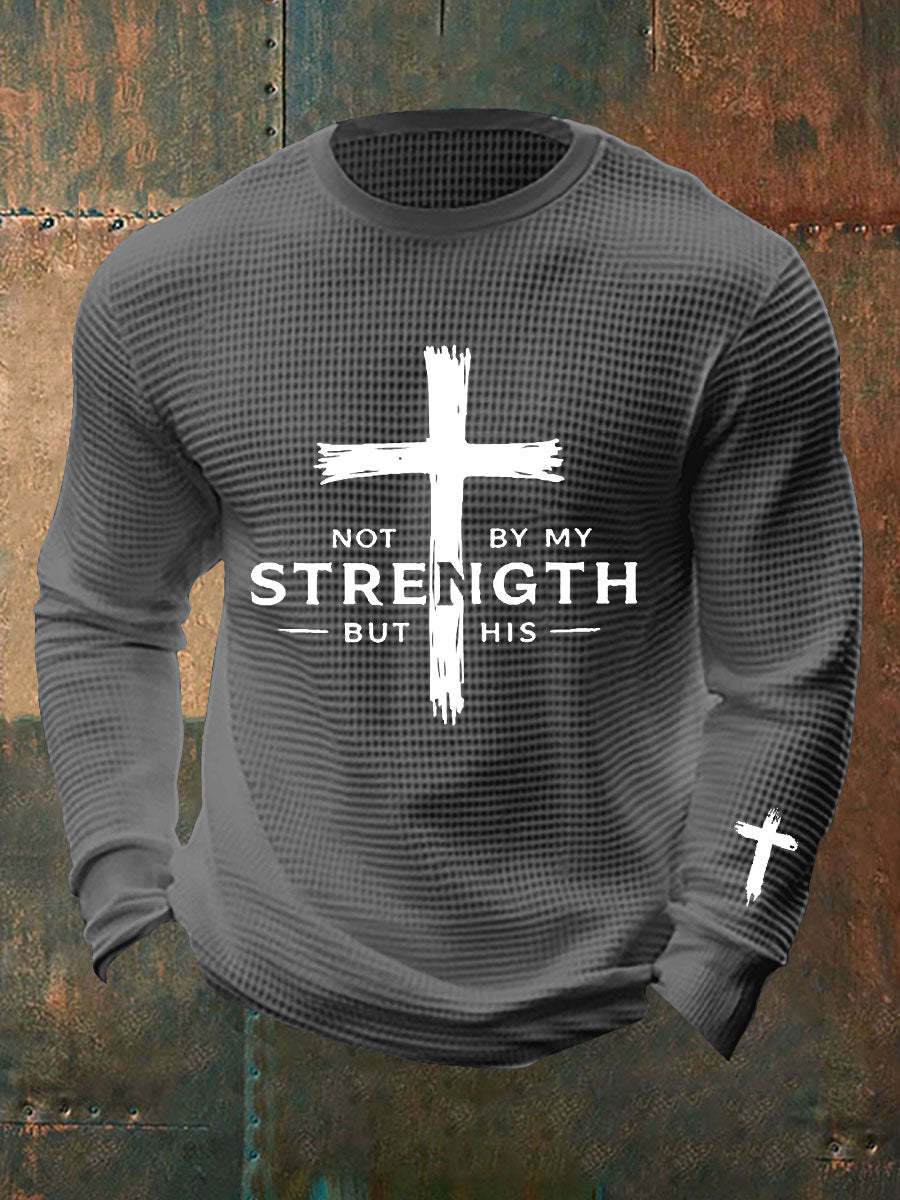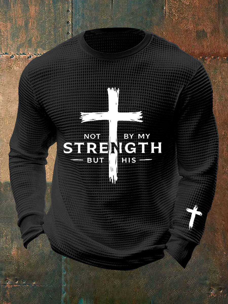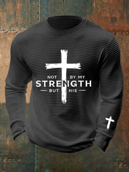 Men's Not By My Strength But His Waffle Print T-Shirt