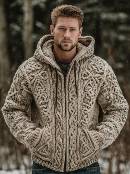 Men's Viking Celtic Knot Chunky Knit Hooded Sweater Cardigan