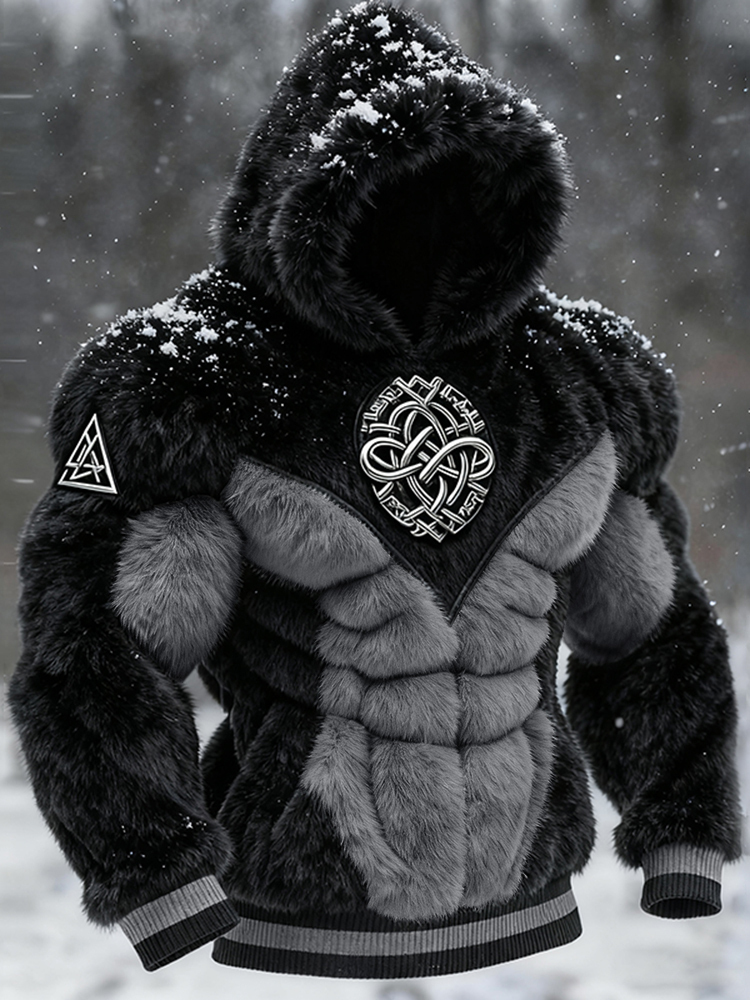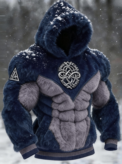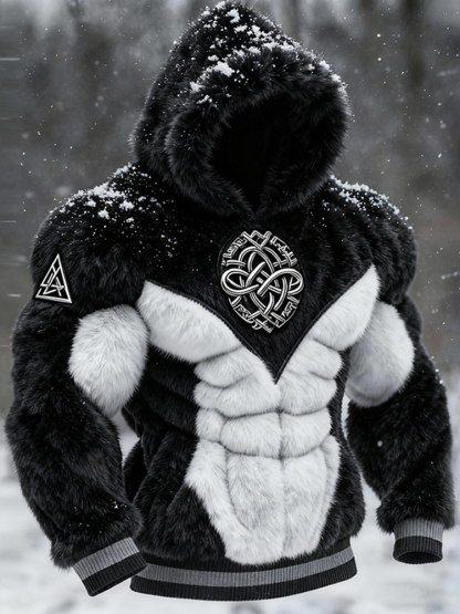 Men's Viking Tribal Jacquard Celtic Muscle Line Inspired Art Plush Warm Hoodie