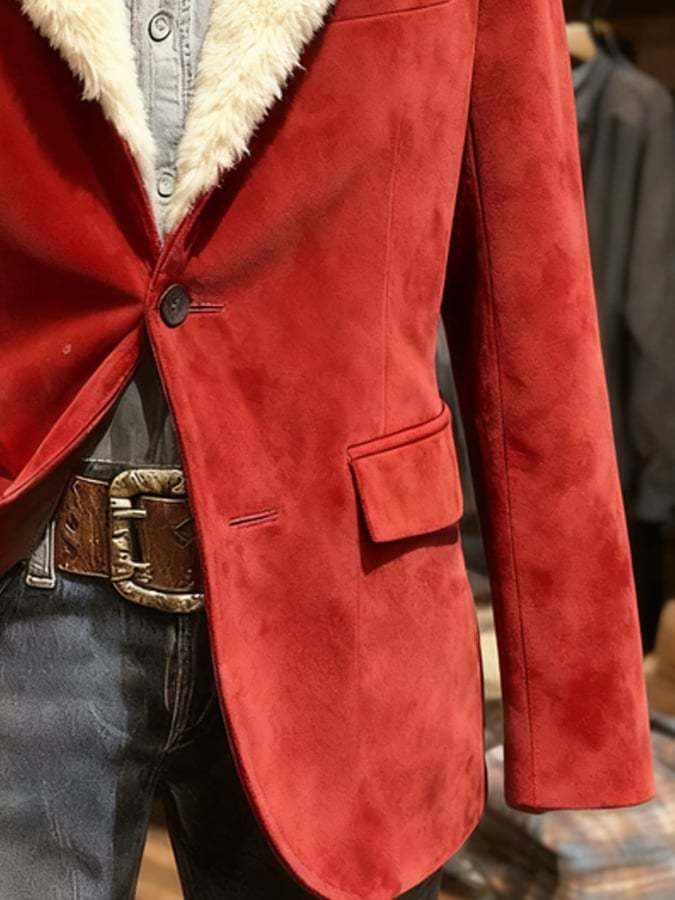 Men's Vintage Suede Christmas Plush Warm Jacket