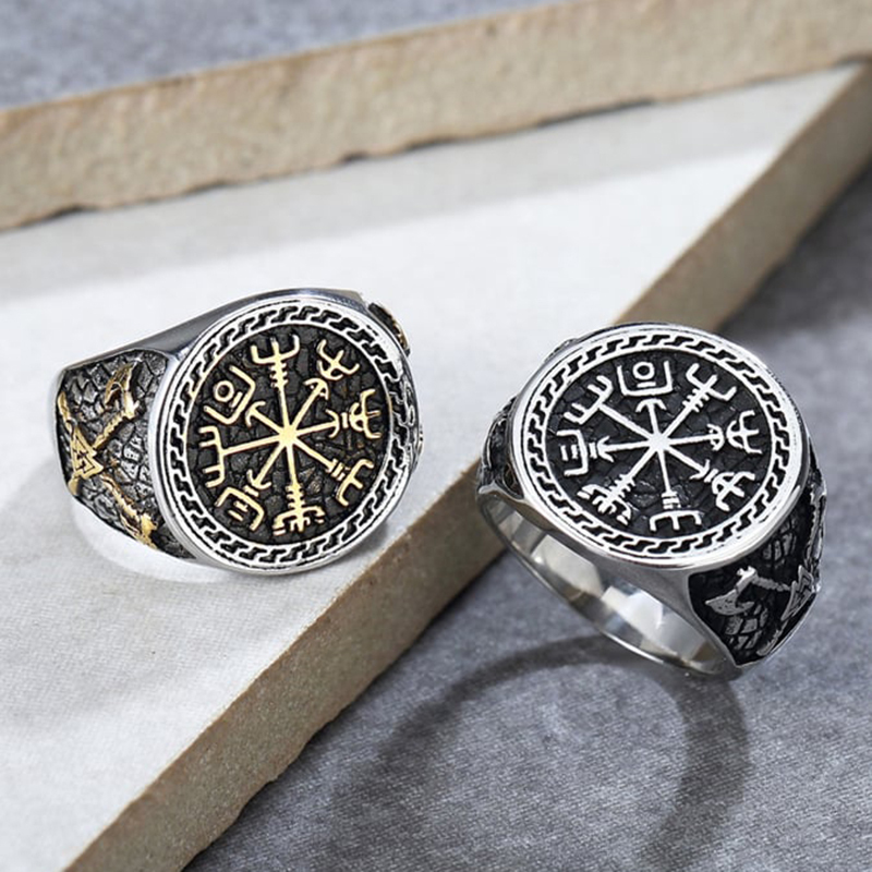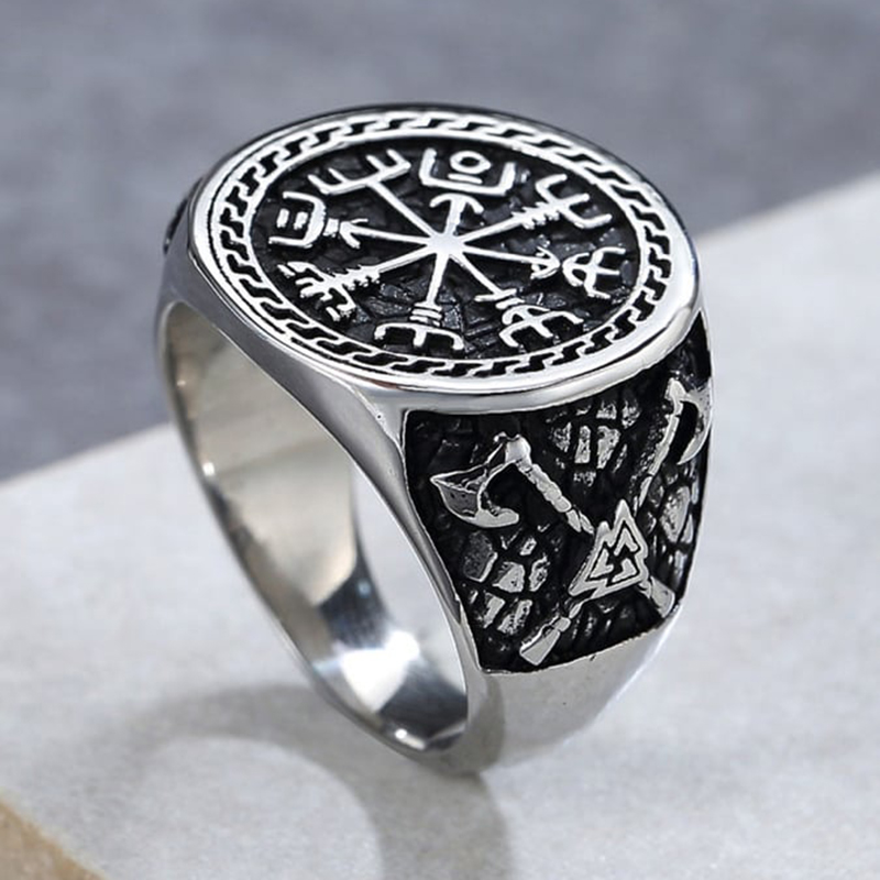 Men's Vintage Viking Rune Axe Totem Titanium Ring