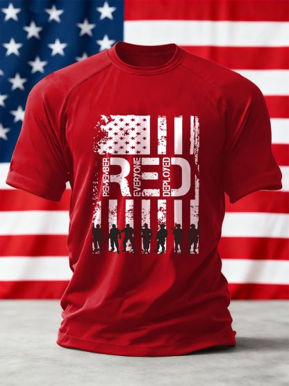 Men's We'll Wear Red to Remember Them Printed Crew Neck Short Sleeve T-shirt