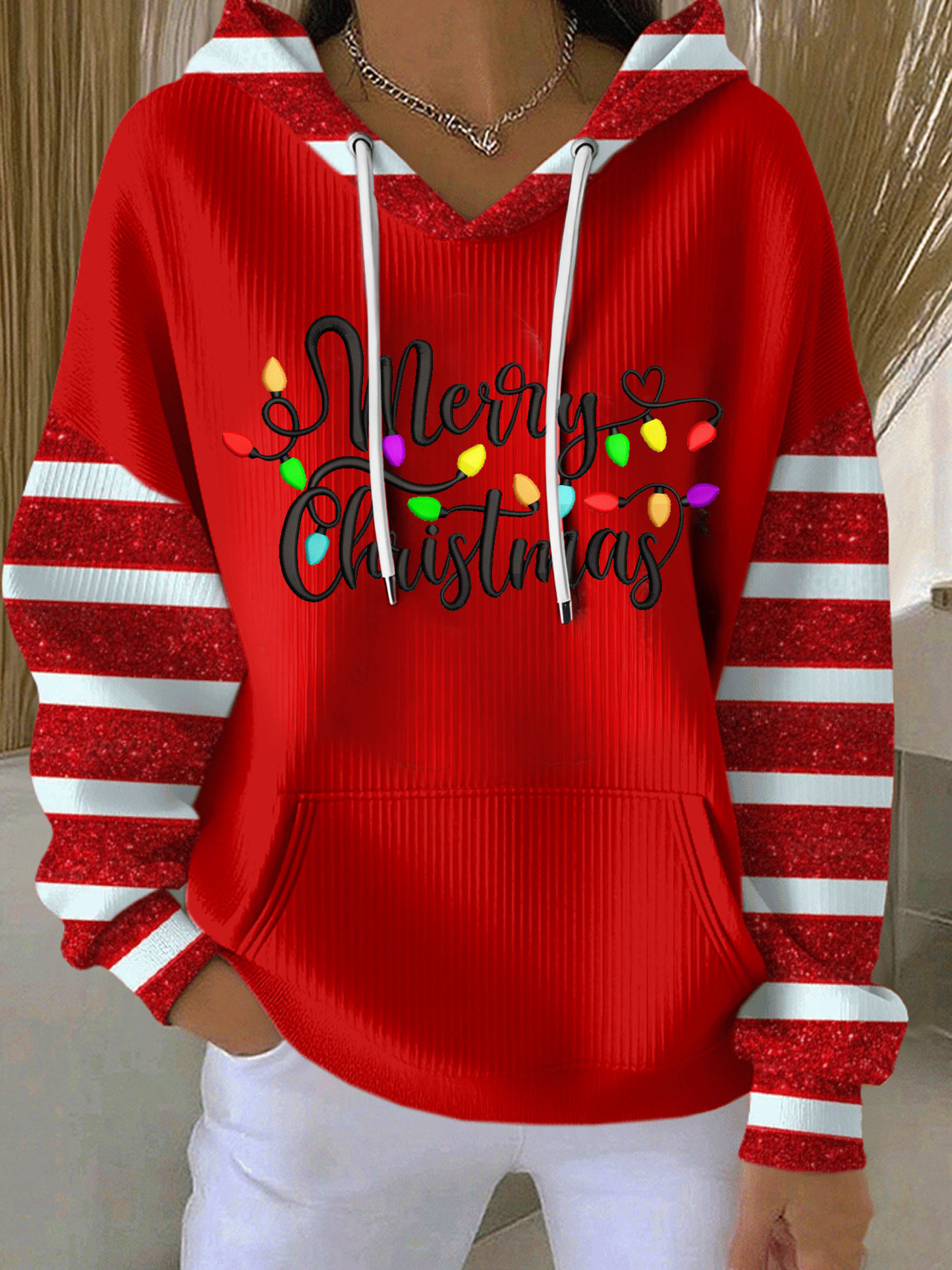 Merry Christmas Light Art Casual Hoodie Sweatshirt