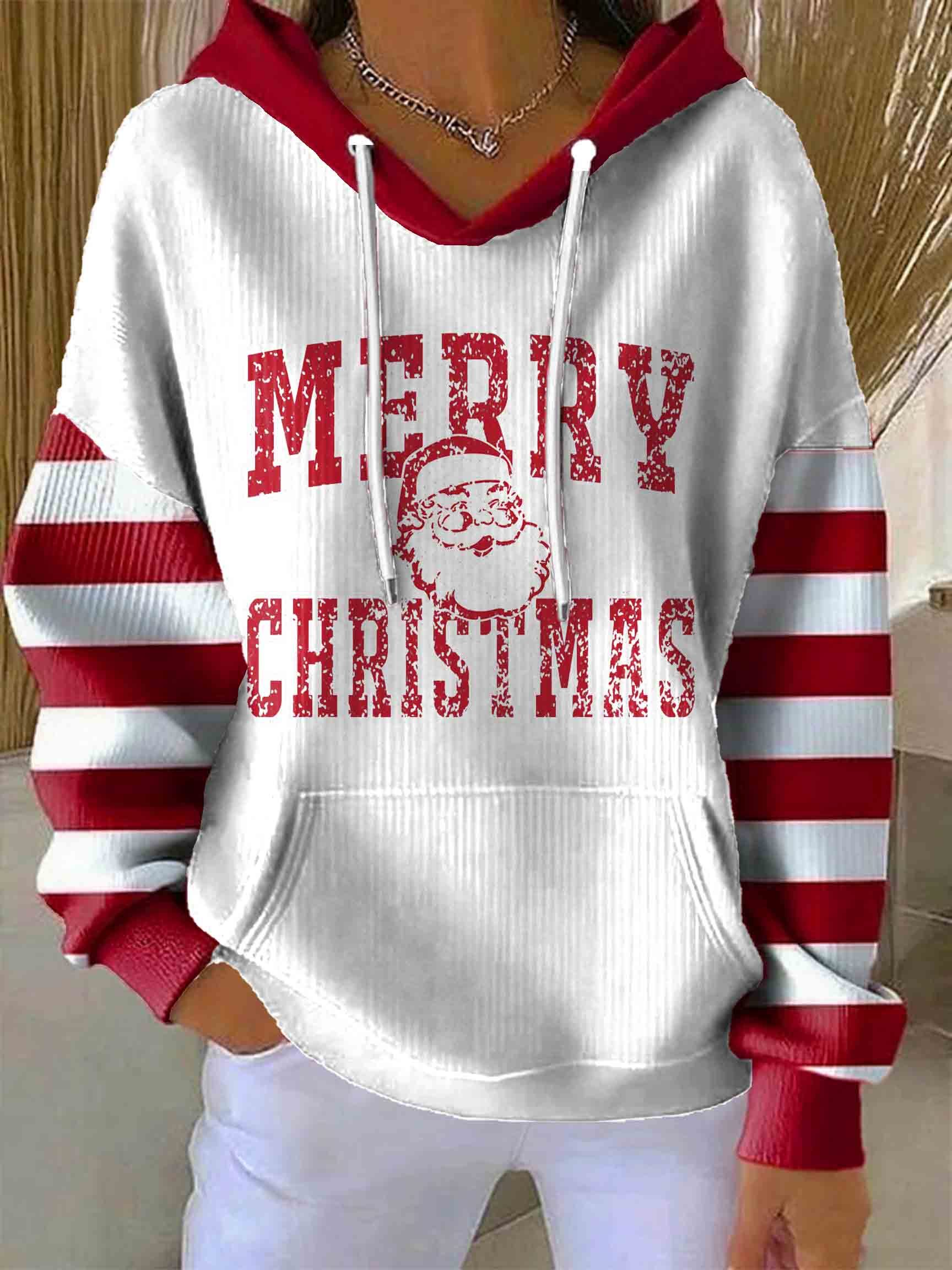 Merry Christmas Stripes Art Print Casual Hoodie Sweatshirt