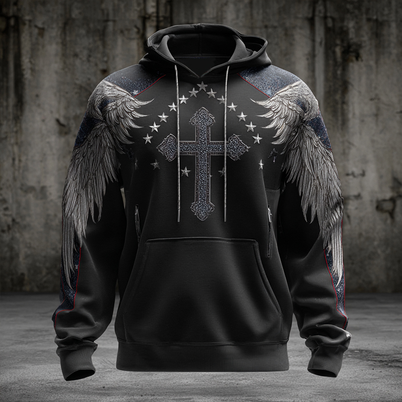 Vintage American Flag Faith Patriot Art Print Casual Hoodie