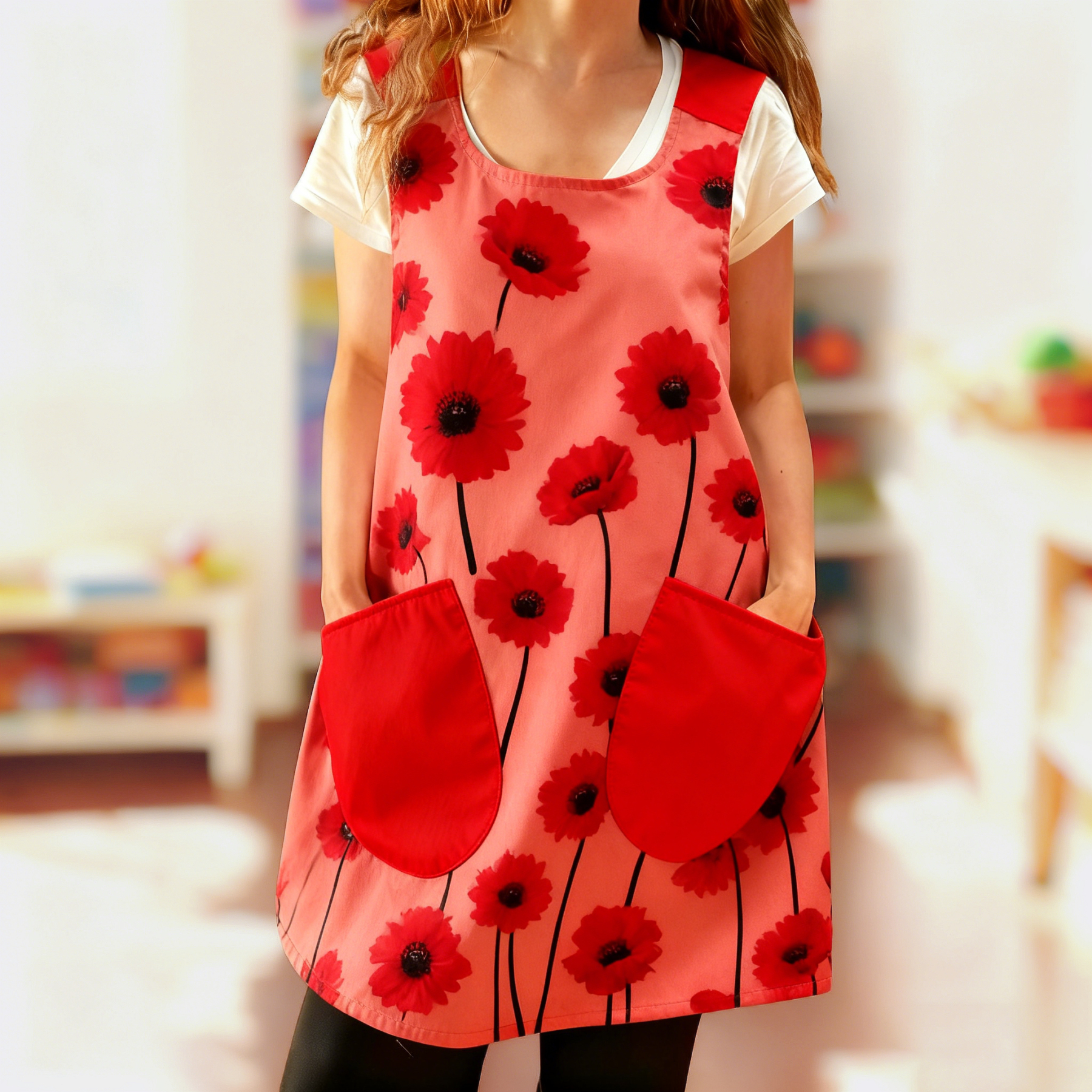Red Bloom Cross Strap Apron