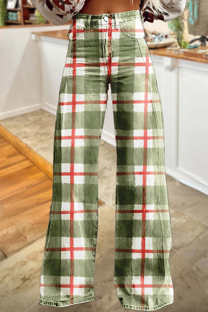 Christmas Red And Green Plaid Wide-Leg Pants