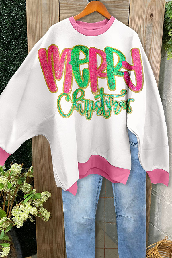 Shiny Merry Christmas Bat Sleeve Sweatshirt