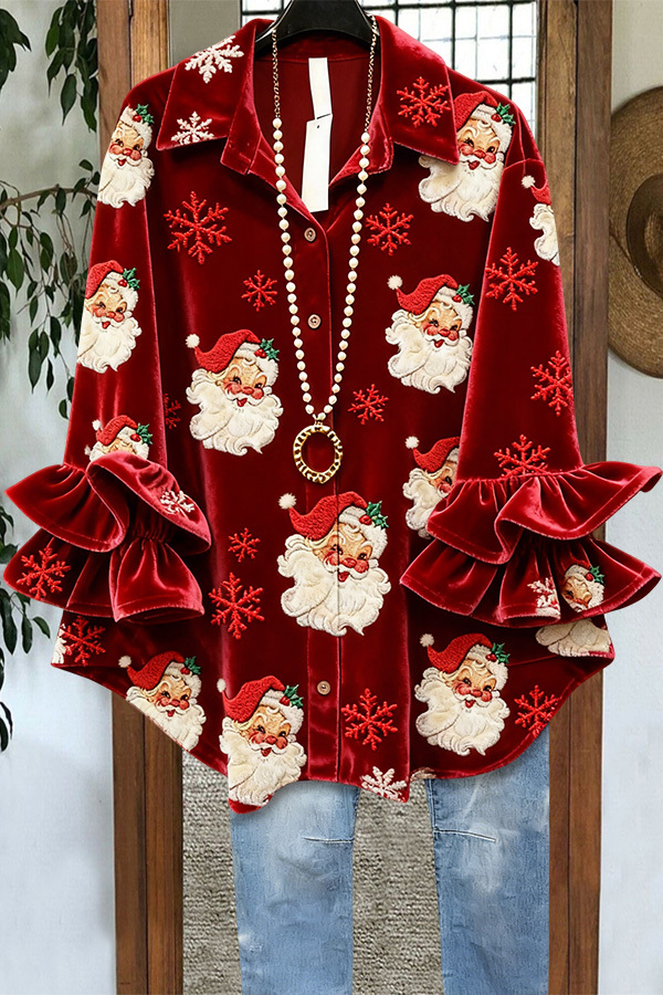 Santa Claus Snowflake Ruffle Velvet Shirt