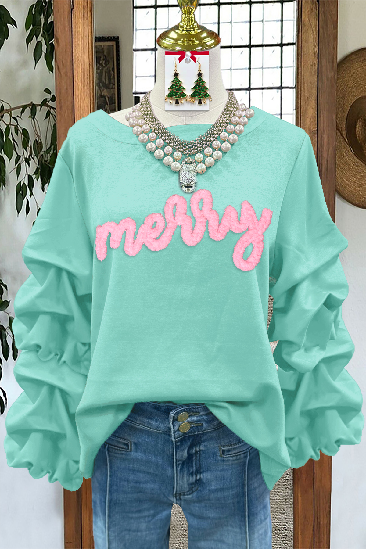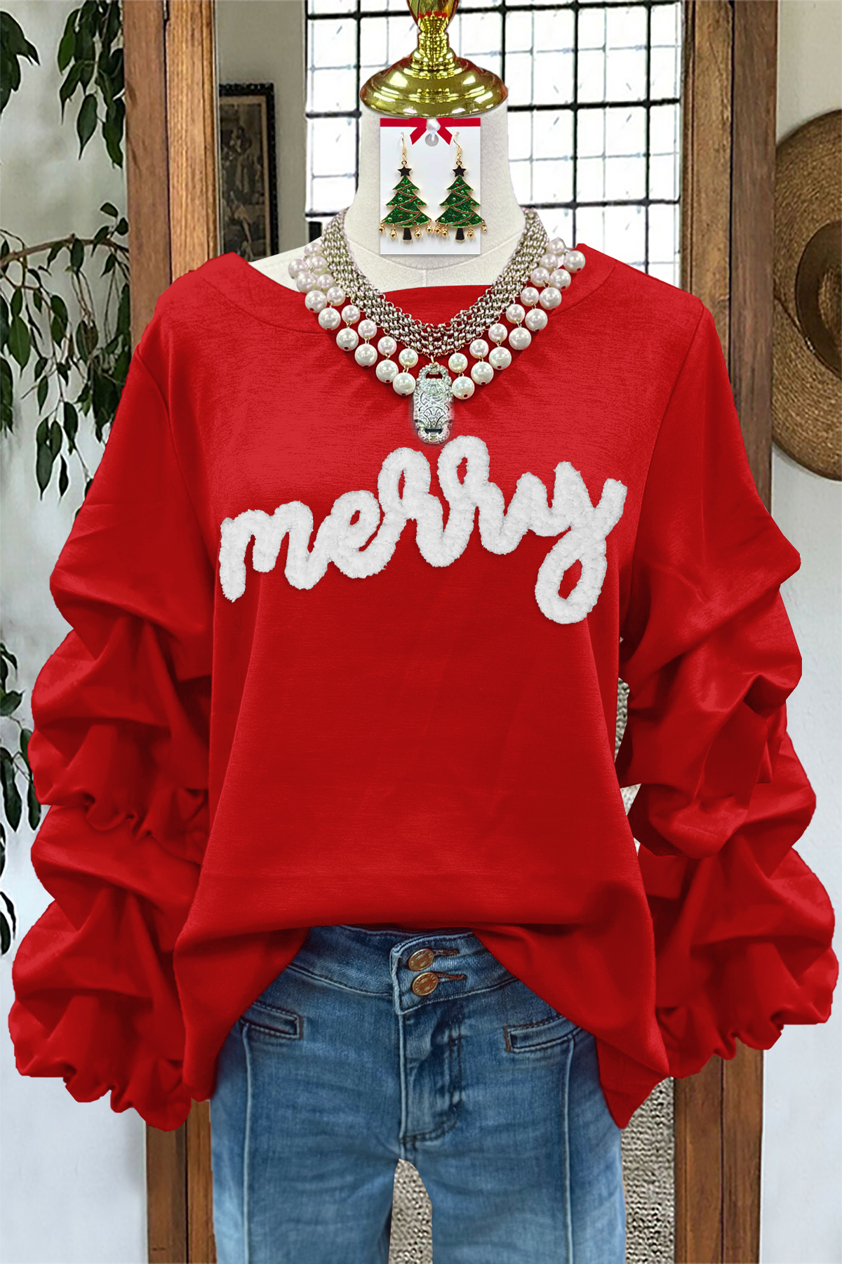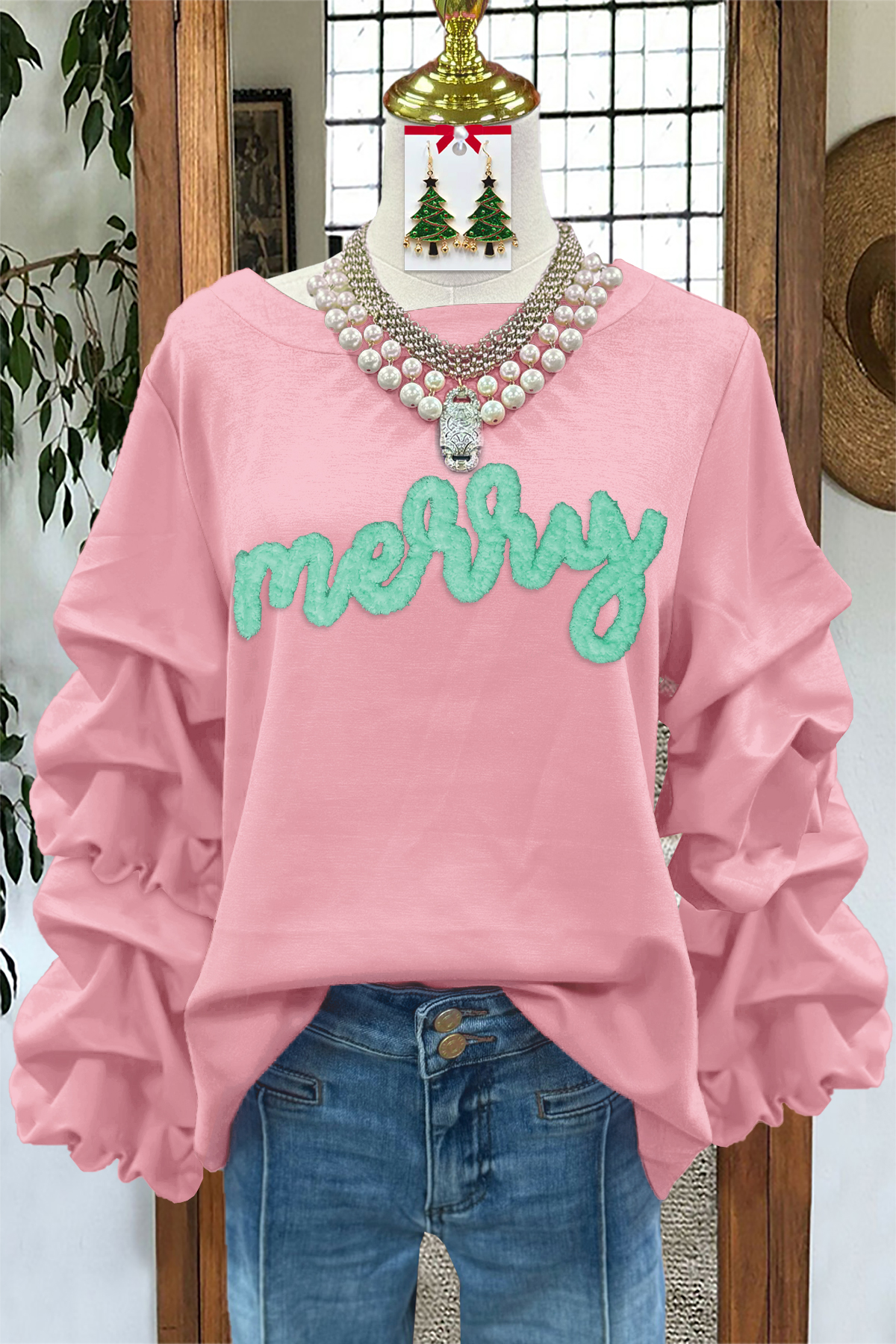 Merry Christmas Pleated Sweatshirt