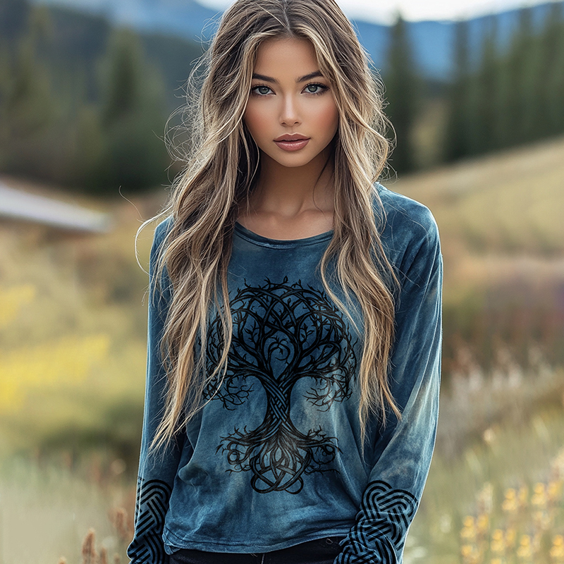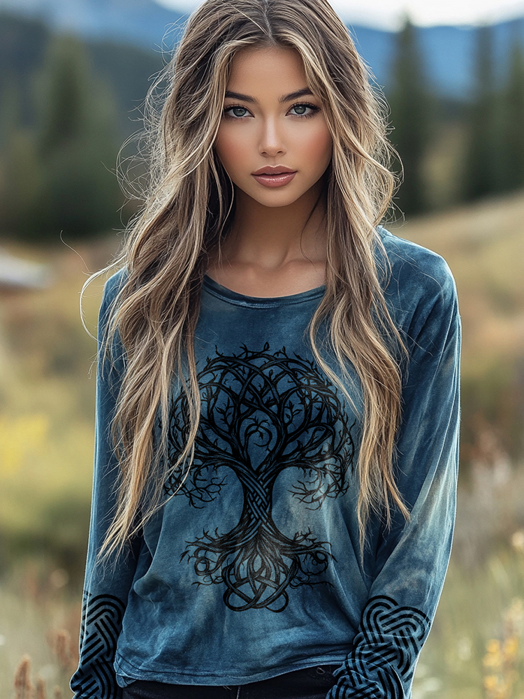 Retro Mystical Life Of Tree Print Basic T-shirt