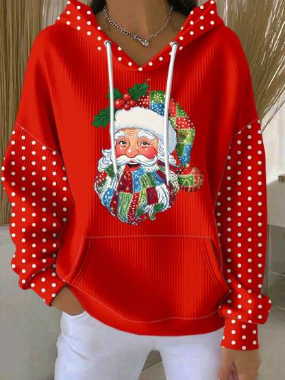 Santa Claus Polka Dot Christmas Art Print Casual Hoodie Sweatshirt