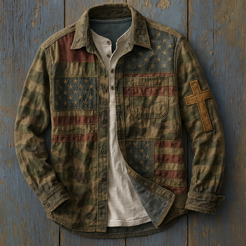 US Flag Faith Retro Art Print Long Sleeve Shirt