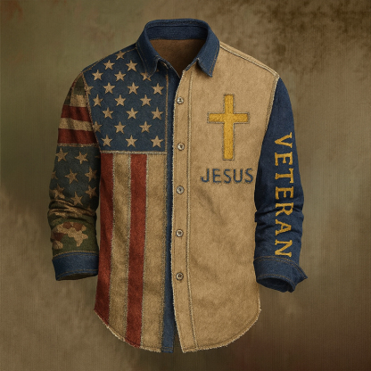 US Flag Faith Retro Art Print Long Sleeve Shirt