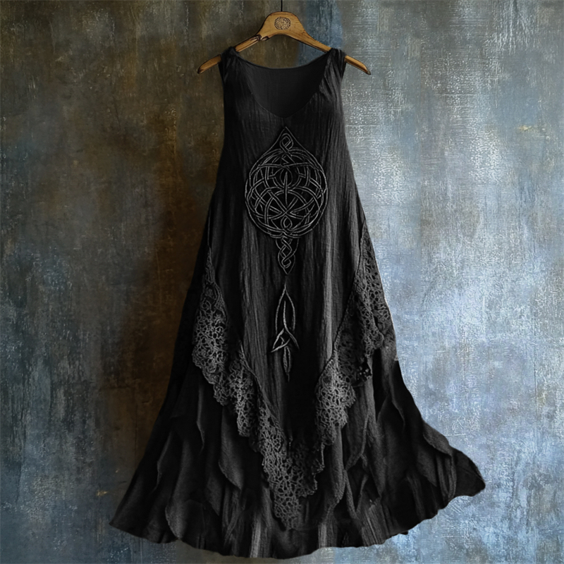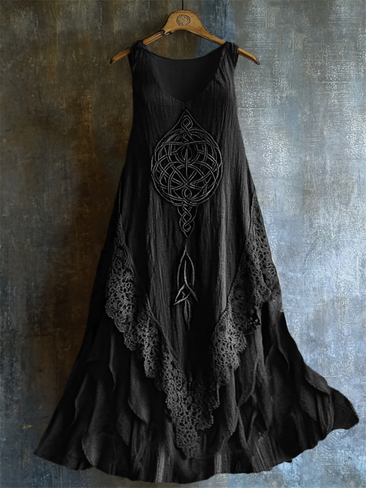 Viking Celtic Knot Lace Hem Layered Linen Tank Dress