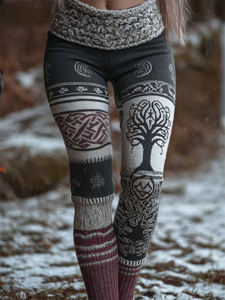 Viking Tree Of Life Celtic Contrast Color Cozy Knit Leggings