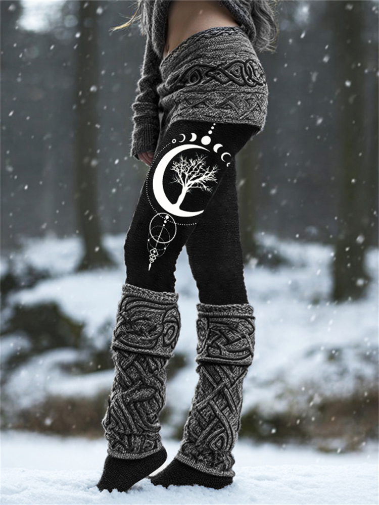 Viking Tree Of Life Moon Phase Totem Cozy Knit Leggings